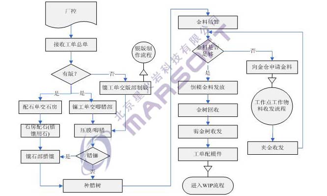 在Jew5工厂生产系统中,任何一个工作点,任何一个工序和任何一个工人,都有自己单独的金料库存、配件库存、石料库存,以及工具库存。这些独立的库存的总和就是总库存。与此同时,每个客户也有自己的客来金料库存、客来配件库存和客来石料库存。Jew5系统可以从不同的角度,全方位监控工单在工厂从产生到结束的全过程,同时记录和统计在生产过程中的金耗、工费等额外信息。