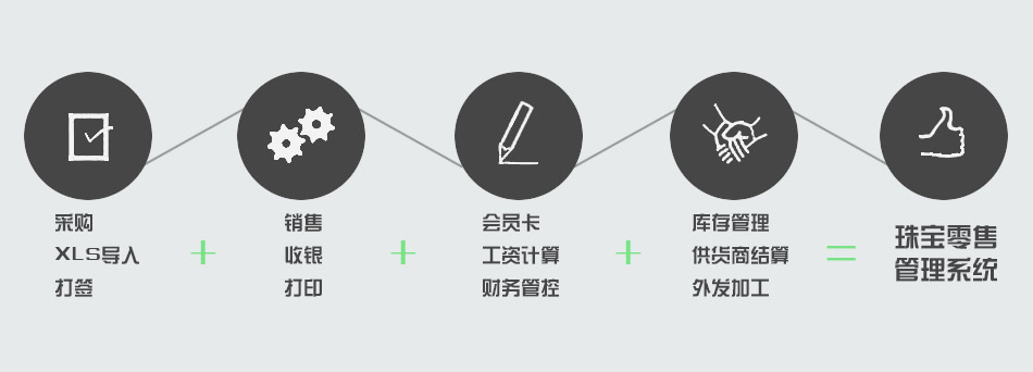 C. Jew5珠宝零售系统支持从采购、XLS导入、店内定价打签、销售、收银、打印、会员卡(储值、积分、打折等)、改价、工资计算、财务管控、库存管理、供货商结算、外发加工等零售店主体业务。